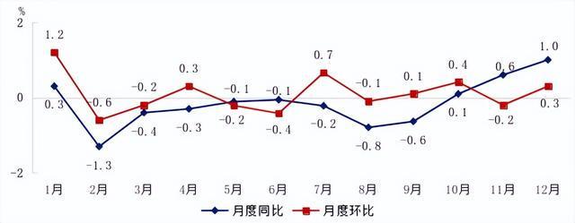 全年居民消费价格比上年下降0.1%。工业生产者出厂价格下降1.7%,工业生产者购进价格下降1.8%。农产品生产者价格下降1.9%。12月份,新建商品住宅销售价格环比指数为99.6、同比指数为97.6;二手住宅销售价格环比指数为98.7、同比指数为91.5。